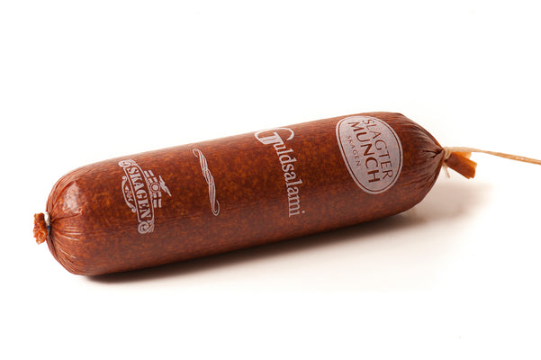 Fremstillet af skinkekød. Mildt krydret med bl.a. paprika, løg og peber.
