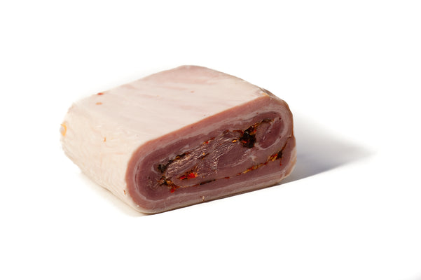 Ingredienser: Griseslag, krydderier, hvid peber, løg, sukker, salt, konservering (E250). Røget og kogt.